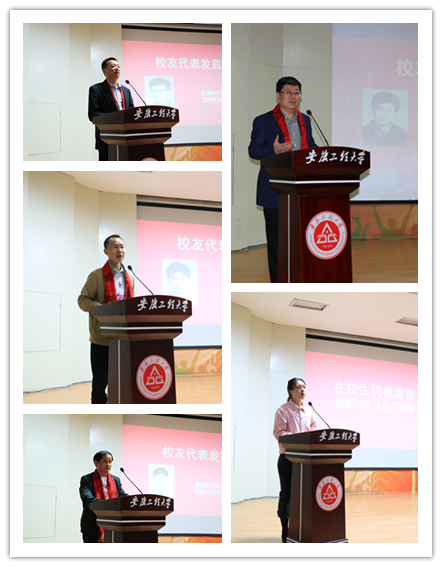 机制831班校友袁祖怀、机制832班校友沈刚、发酵931班校友谢正山、食品931班校友葛新华分别代表班级发言,他们感慨学子的成就离不开母校的教育培养,真切地表达了对母校、对老师谆谆教诲的感激之情,同时也对在校生寄托了殷殷希望。