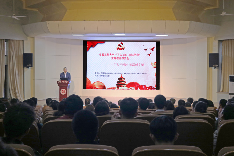 在全校上下深入开展“不忘初心、牢记使命”主题教育活动之际,11月2日上午,我校在学术报告厅举行“不忘初心 、牢记使命”主题教育优秀校友报告会。安徽省优秀大学生村官标兵、我校2013届人文学院行政管理专业毕业生吴德勤作了《牢记初心使命 基层创业富民》专题报告。各学院学生党员代表、入党积极分子等300余人参加了此次报告会。