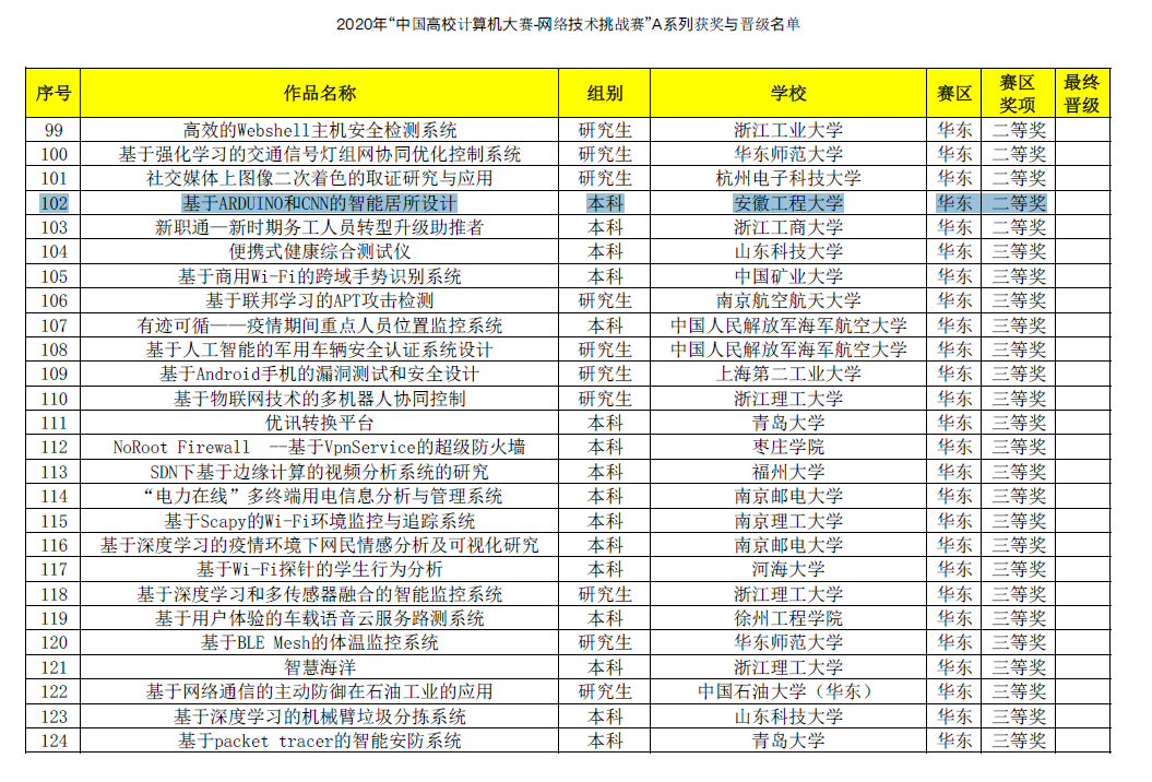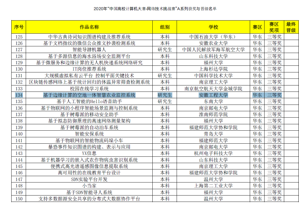 本网讯 近日,教育部高等学校计算机类专业教学指导委员会、教育部高等学校软件工程专业教学指导委员会、教育部高等学校大学计算机课程教学指导委员会、全国高等学校计算机教育研究会联合创办的高校计算机大赛-网络技术挑战赛选拔赛网上评审结果公布,我校计算机与信息学院荣获华东区赛一、二、三等奖各一项。