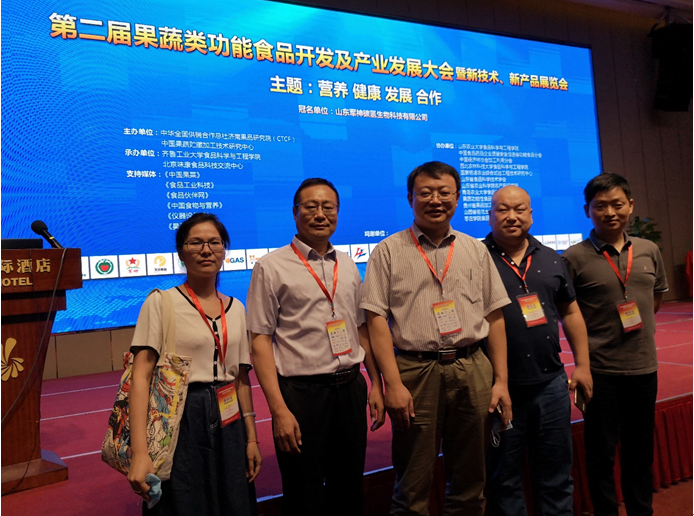 本网讯 近日,生物与食品工程学院食品专业教师王顺民、谢丹和徐继成一行赴山东济南参加第二届果蔬类功能食品开发及产业发展大会。本次会议由中华全国供销合作总社济南果品研究院和中国果蔬贮藏加工技术研究中心主办,齐鲁工业大学食品科学与工程学院和北京味康食品科技交流中心承办,来自全国食品领域的高校、科研院所、龙头企业、社会团体及媒体等200家单位300余位专家学者企业家参会。
