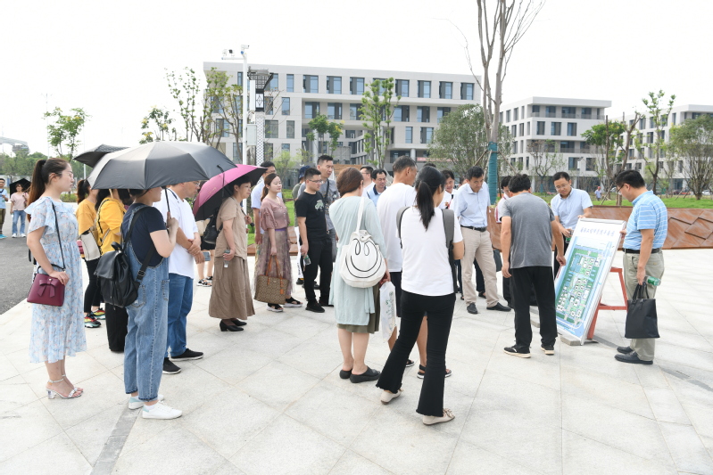 宣传部、马克思主义学院一行受到了国际工程师学院校区管理委员会常务副主任魏长顺、建设办公室主任李敬华、副主任陈阳等热情的接待。在李敬华带领下,大家先后参观了图文信息中心、教学楼、学生活动中心、书院式学生宿舍、师生食堂等主体结构、室内装饰及校园苗木和景观,并现场聆听了李敬华关于国际工程师学院规划布局、后续建设等介绍。陈阳带领大家体验了构思巧妙、技术先进、设施完备的智慧型学术报告厅和现代化的教室,令全体老师叹为观止。一起陪同参观的王中江、方丽娟等老师们,不时提醒要来国际工程师学院上课的老师们关于教室、食堂、地下停车场等方位,十分细致周到。