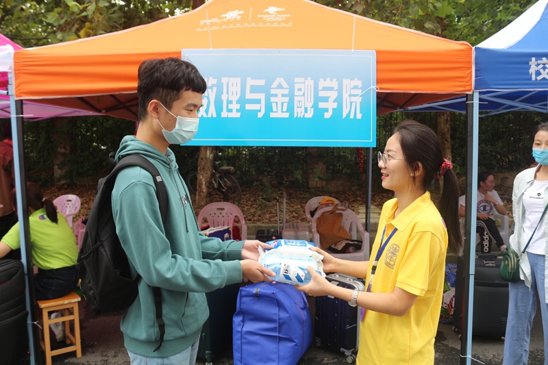 本网讯 欣喜相逢迎新时,萌新与“理”初相见。9月20至21日,数理与金融学院2020级240名本科生、45名研究生陆续到校报到。数理与金融学院精心筹备、策划,用六个“一”,给迎新工作增加温度。