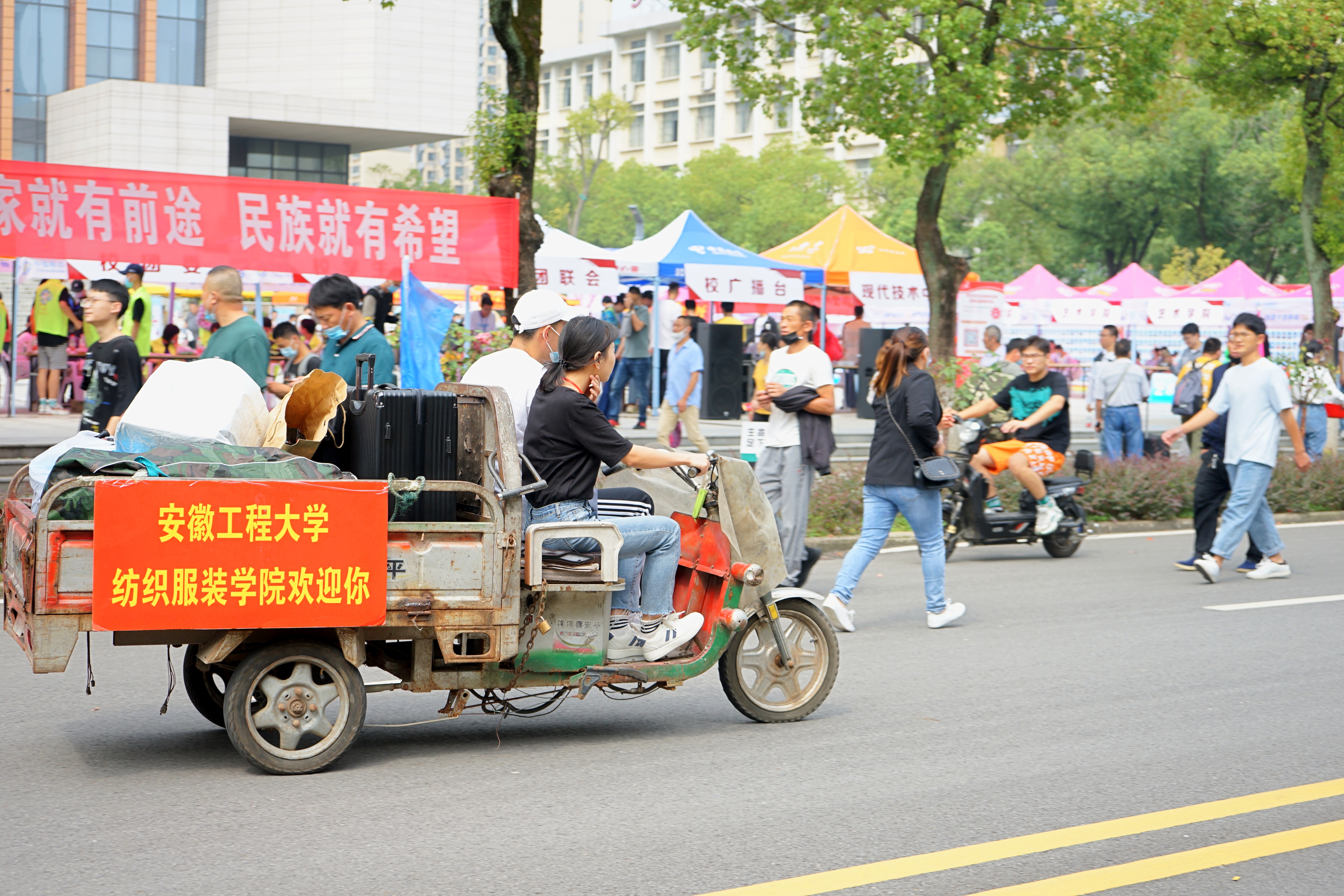 一张张亲切的笑脸,一句句热心的问候,一系列贴心的服务,纺服人在用着自己的方式迎接来自全国各地的学子。一个美好的开始,一定会助力20级萌新在安徽工程大学的校园里尽情绽放自己的青春。