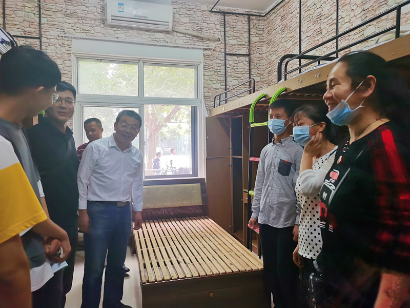 暑假时学院遴选出新生导员提前建立了新生QQ群,在群里就新生入学注意事项、新生入学报到流程等为萌新们积极答疑解惑。报到当天,学院采取“一袋式”报到服务,简化程序、提高效率。一个个红马甲志愿者穿梭在校园内,为新生们作指引,搬行李,送寝室。在今年的20级新生中,我们迎来了一位特殊的同学。小时候的一场意外让这位同学不幸脑瘫,但是在今年的高考中,依然通过自己的努力来到了安徽工程大学,正式成为一名大一新生。新生辅导员了解到他的情况后,及时上报学院领导,院党委书记高度重视,提前部署,与后勤保障处协商,为其准备了特制的”寝具”。报到当天,学院还专门为其开辟绿色通道,帮助他更方便地完成报到手续。