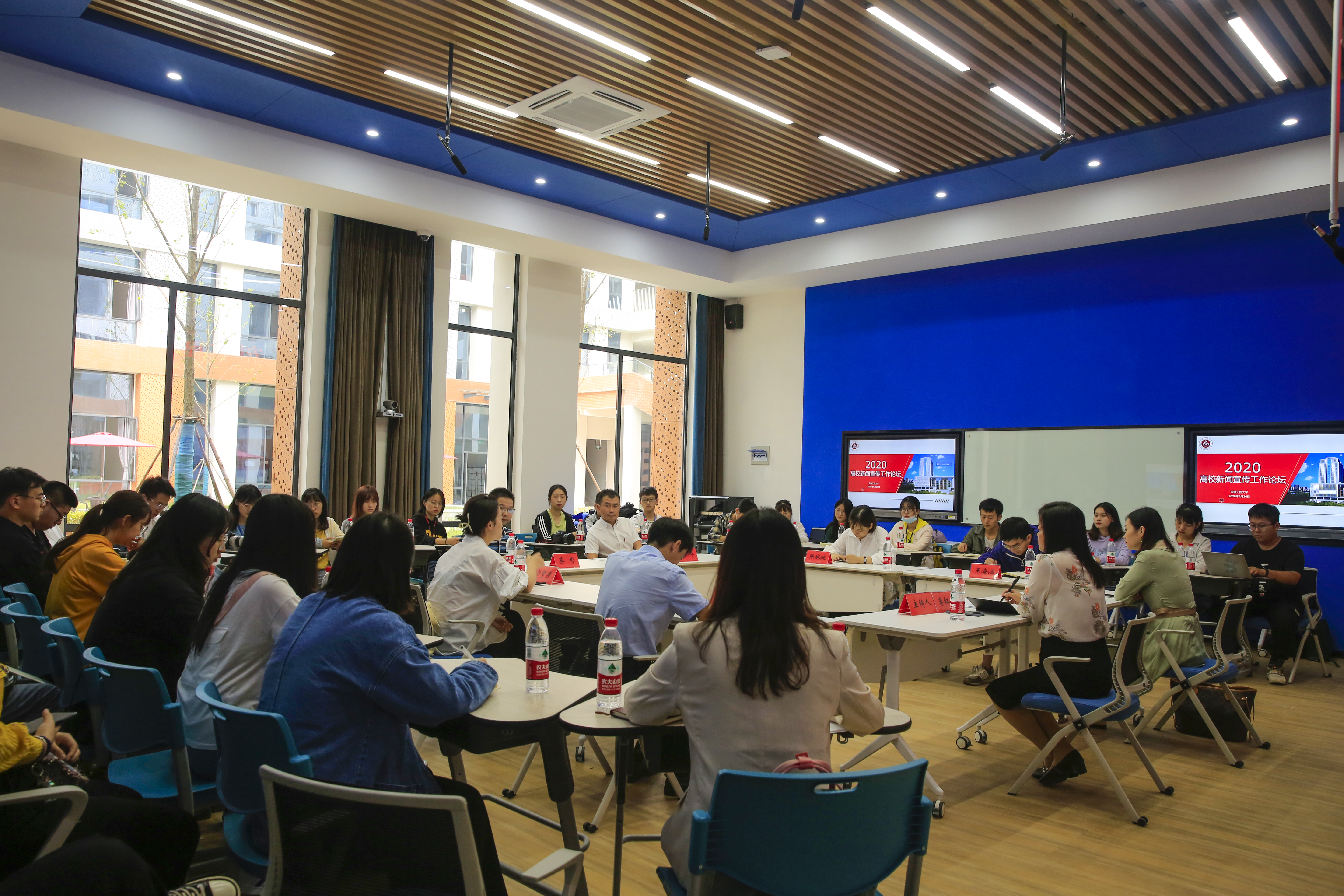 本网讯 9月26日,2020年我校新闻宣传工作论坛在我校国际工程师学院举办。新华社安徽分社记者周畅,人民网安徽频道记者戴超,中国教育报安徽记者站记者方梦宇,中国青年报安徽记者站记者王海涵,安徽日报记者陈婉婉,安徽教育网主编蔡彬,安徽青年报社新闻中心主任张华,应邀出席本次论坛。校宣传部全体人员、各校园媒体组织的指导老师和学生骨干代表参加本次论坛。论坛由宣传部副部长李红星主持。