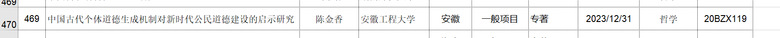 本网讯 日前,全国哲学社会科学工作办公室公布2020年国家社科基金年度项目和青年项目立项结果,我院陈金香博士申报的课题“中国古代个体道德生成机制对新时代公民道德建设的启示研究”成功获批国家社科基金年度项目(一般项目)。