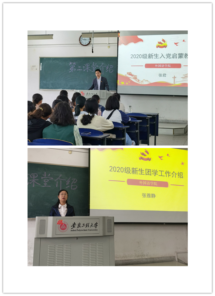 说一说“担当”。在入党启蒙教育课上,学生第一党支部教师党员张君用疫情期间所见所闻,为新生讲述新时代大学生党员的担当故事,引导广大新生树立远大志向和正确入党动机,勇于担当时代责任。在介绍团学工作时,学院团委书记张雅静老师利用一个“你愿意站出来吗?”主题社会实验,教育广大新生要知行合一,在具体实践中勇于担当作为。