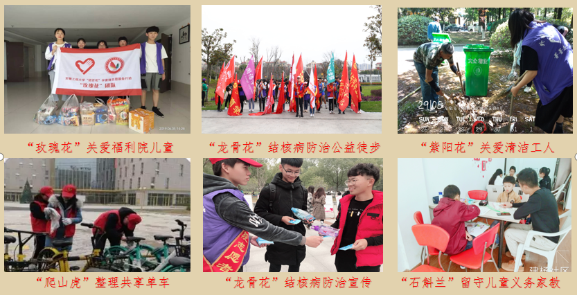 外国语学院坚持把开展大学生志愿服务作为培养高素质人才、加强团组织凝聚力和影响力的重要载体,建立健全志愿服务组织体系,加强学院志愿服务统筹规划、指导和监督,着力培育志愿服务品牌项目。通过和芜湖市疾控中心、芜湖市社会(儿童)福利院、鸠江区环卫所、鸠江区赭麓街道建杨社区等单位合作,开展以英语支教、敬老助老、关爱儿童、关爱环卫工人、社区服务、城市建设等各类型志愿服务活动。近年来,涌现了“龙骨花——结核病防治知识传播”、“玫瑰花——关爱青少年”、“紫阳花——关爱环卫工人”、“石斛兰支教团队”、“山樱花——语言滋润人心,翻译融化界限”等一批独居特色、持续开展公益活动的大学生志愿服务团队,他们主动作为,用实际行动践行志愿者精神,取得了良好的社会效益。芜湖市社会(儿童)福利院授予学院“爱心单位”荣誉称号。“龙骨花”团队连续两个年度获得国家级优秀志愿者团队称号,连续三年获得“安徽省百千万志愿者结核病防治知识传播活动”立项资助。一批志愿者获得安徽省、芜湖市、学校的各种表彰。芜湖新闻联播、中国高校之窗网、安徽结核病防治网等媒体对我院的志愿服务活动进行了关注和点赞。