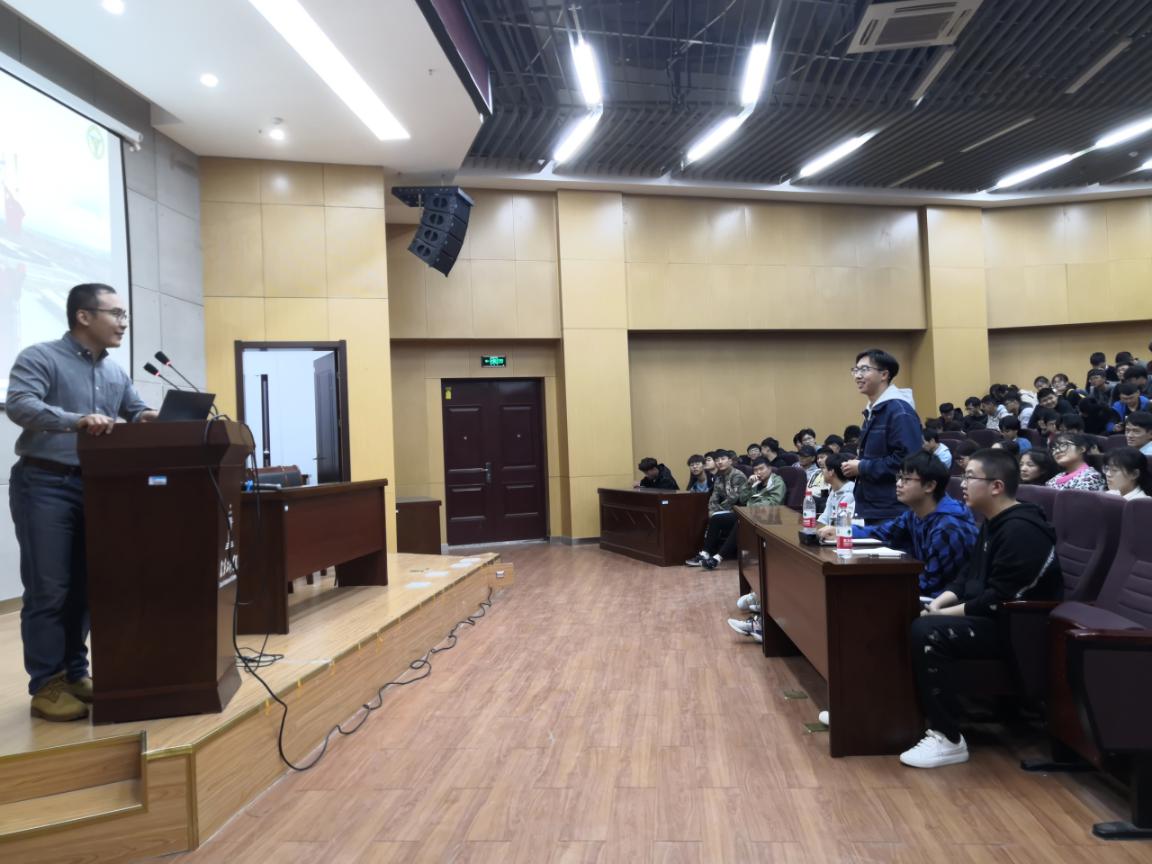 报告会上,高常辉分享了自己的求学经历,他从一个概念入手,向大家介绍了什么是科研,并且向大家展示了科研方法的流程图。他用生动的语言比喻了本科、硕士以及博士阶段的学习的区别,将自己的科研成果与大家进行分享。他将大学毕业后两个选择方向考研与就业的目前形势与大家的选择动机进行分析,给出三点建议:选择第一、规划第二、坚持第三,鼓励大家发掘自身优势,准确定位,找到适合自己的路。最后,同学们和高常辉进行了现场互动,大家就科研方向的确定、考研导师的选择以及专业未来的就业前景进行了交流。