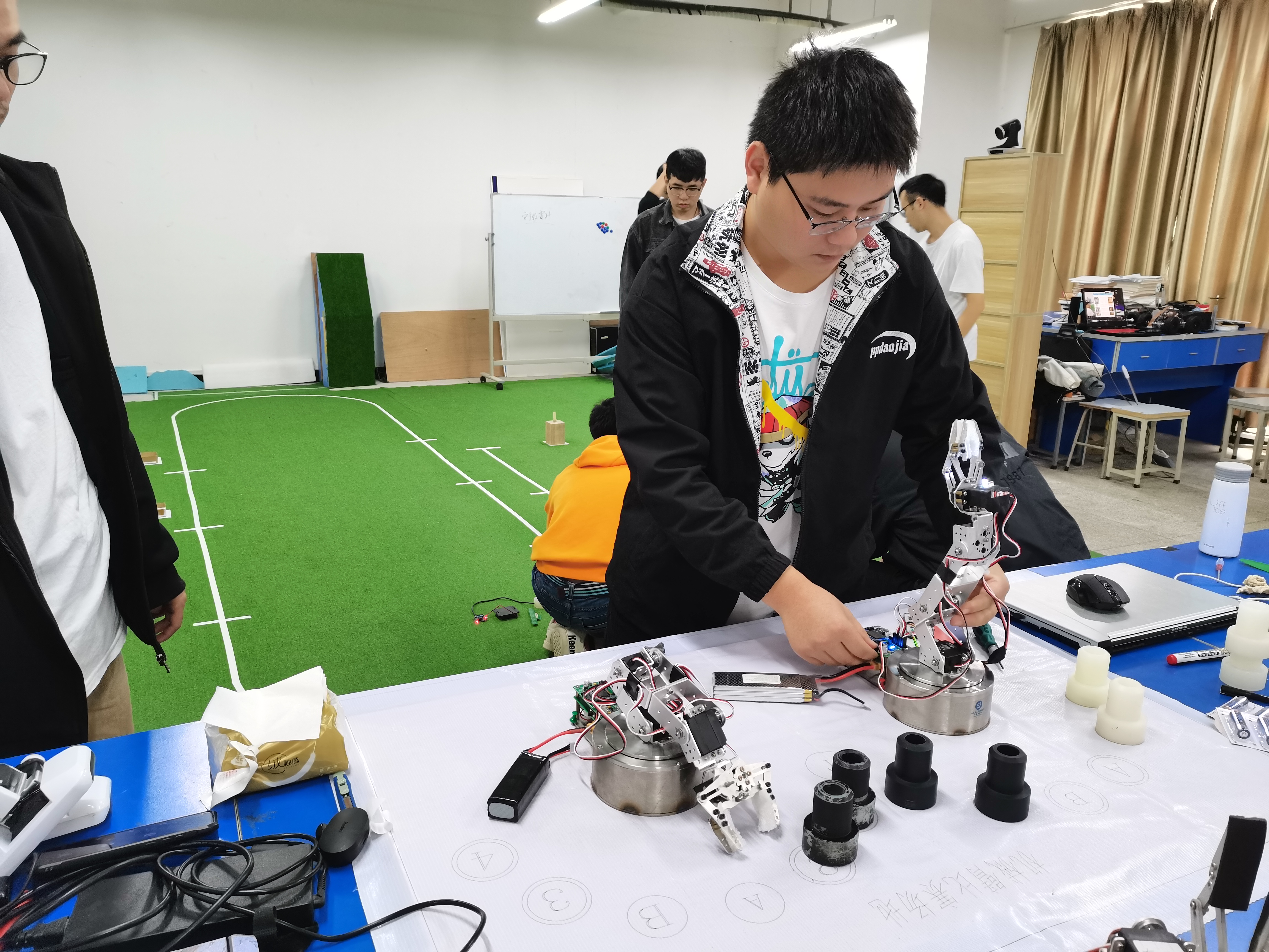 计算机与信息学院共派出6支代表队,参加了机械臂挑战赛、轮式机器人田径赛、仿人机器人比赛的三个大项,五个小项的角逐。