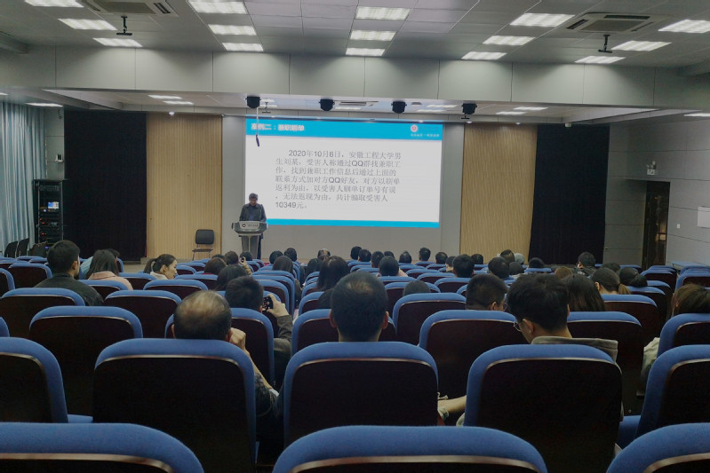 保卫处副处长江海对全体辅导员作反诈骗专题培训,他结合我校近期网络电信诈骗案件案发情况,真实、生动地展示了诈骗案件的过程,揭示常见的诈骗套路。他倡导全体辅导员筑牢思想防线,提高防范意识,做好反诈宣传的思想教育工作,引导学生从思想上树立安全防范和防诈骗意识。