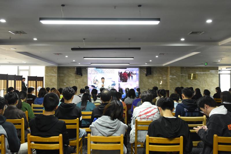 周宇航同学以“勇敢”“独立”“担当”“在爱中行走”四个主题跟同学们分享了自己的四个故事。他说大学是开始选择自我,去追求真爱,去探索世界的时期。他分享了自己旅行的经历,他的足迹到了中国最北的漠河,最西的西藏,到了云南、甘肃、山西等等。他为了每次的旅行,可以提前半年甚至一年开启攒钱计划。他鼓励大家“勇敢”一点,走出去,去看看外面的世界,去体悟未知,亲身感悟旅行的意义。因为旅行,让他读到了很多别人的故事,让他见识到了世间百态。当他看到一个父亲的辛酸时,他明白了自己父母的不易,完成了与父母的和解,开始主动给父母打电话,他“独立”,他长大了,他劝同学们要多与父母沟通,多理解父母。