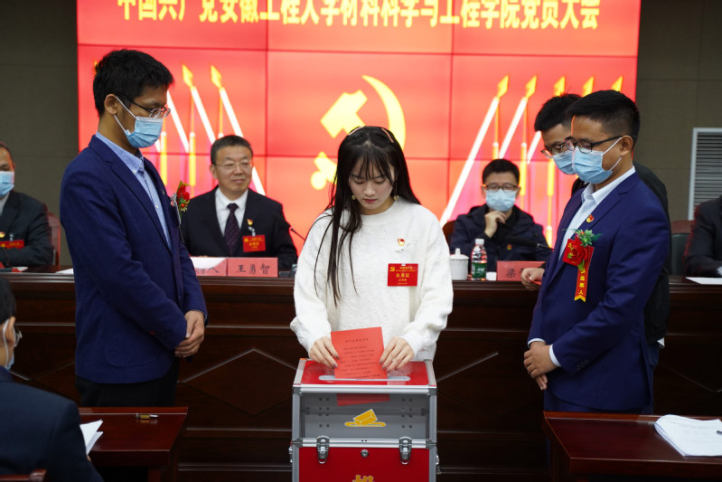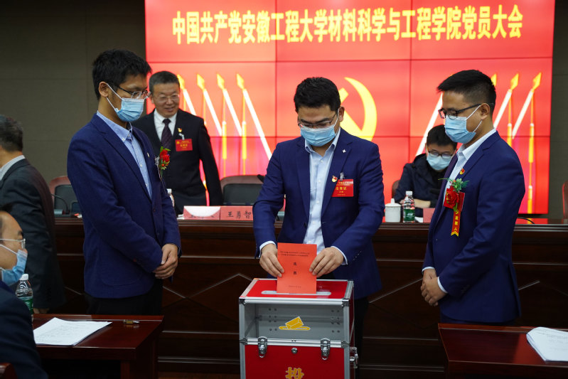 大会按照党内选举规范程序以无记名投票的方式选举产生了中国共产党安徽工程大学材料科学与工程学院委员会委员,新当选的学院党委委员5名(以姓氏笔画为序):王刚、王勇智、方玖胜、朱协彬、刘琪。会议表决通过了《关于中国共产党安徽工程大学材料科学与工程学院党员大会党委工作报告的决议》(草案)。大会在雄壮的《国际歌》歌声中圆满落下帷幕。