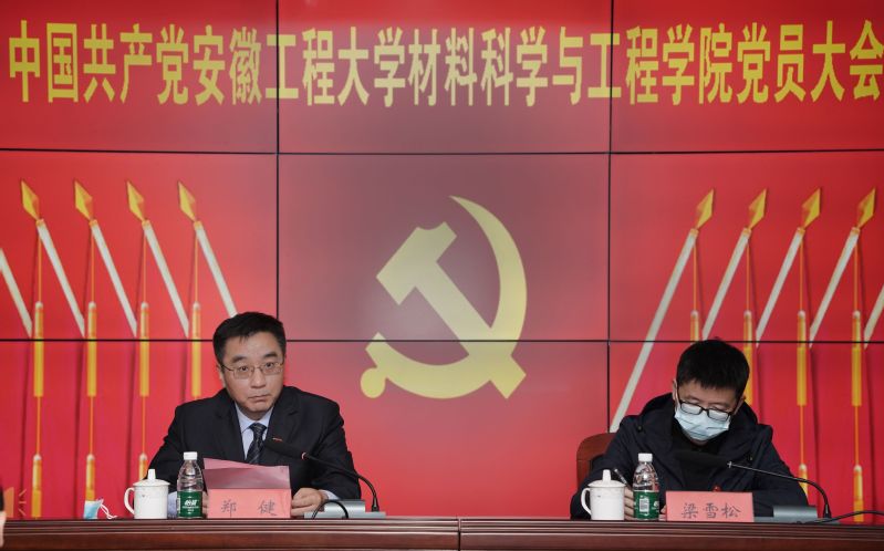 本网讯 11月14日,中共安徽工程大学材料科学与工程学院党员大会在校图书综合楼202会议室召开,校党委常委、副校长郑健出席会议并讲话,校党委组织部副处级组织员梁雪松到会指导。学院全体党员参加,民主党派代表受邀参加,发展对象列席会议。大会由学院党委书记王勇智主持。
