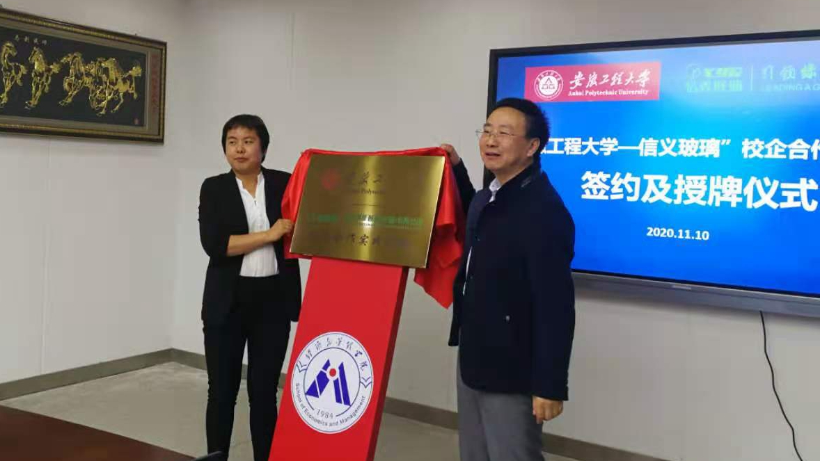 本网讯 11月10日,经济与管理学院与信义节能玻璃(芜湖)有限公司在C818会议室举行了校企合作签约暨授牌仪式。仪式由经济管理学院副院长谢荣见主持,学院党政领导、各专业负责人、骨干教师参加了仪式。