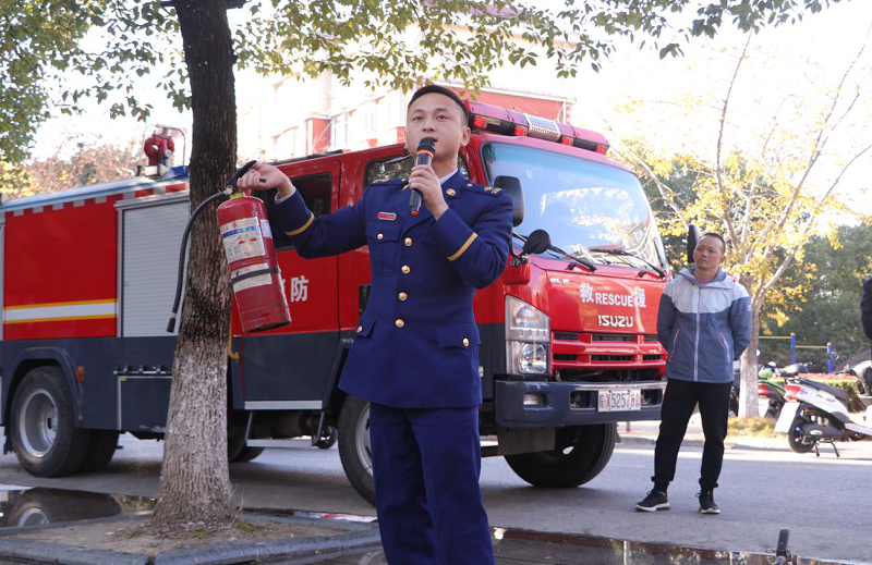 联合消防官兵进校讲解消防器材的使用方法,开展灭火、疏散、救援演练。
