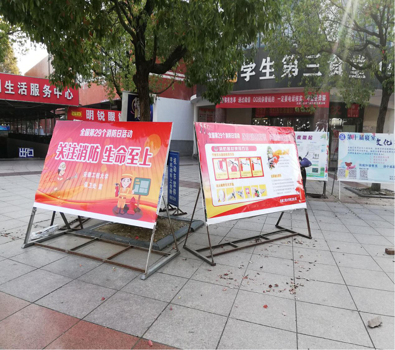 本网讯 11月9日至11月30日,学校开展“关注消防,生命至上”消防宣传月主题活动,活动分为集中宣传、消防培训、消防检查、专项整治、消防演练五大系列。保卫处利用平安安工程公众号、主题宣传展板、横幅、电子屏等线上、线下方式进行展示,积极营造浓厚的消防宣传活动氛围。