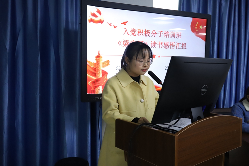 结业典礼在培训班学员齐唱国歌中正式开始。数理与金融学院别出心裁地增设了学生代表分享环节,鼓励学生结合在党校培训班学习期间的各项学习活动与大家分享自己的心得体会。第二十七期入党积极分子培训班优秀学员代表江嘉佳同学以培训班必读书目《梁家河》的阅读心得为主线,以讲演和PPT展示相结合的形式,为同学们讲述了梁家河精神,更是围绕自己作为培训班班长期间的各项活动经历,呼吁同学们要提高责任担当,锤炼自己、练就过硬本领。第六期发展对象培训班优秀学员代表倪蜀婷同学以“为什么要加入中国共产党”为主题,从新冠肺炎疫情期间身边主动请战一线的党员同志到日常学习生活中身边的党员同志的主动担当,都引导着自己坚定理想信念,做一个有温度、有力量、有担当的人。