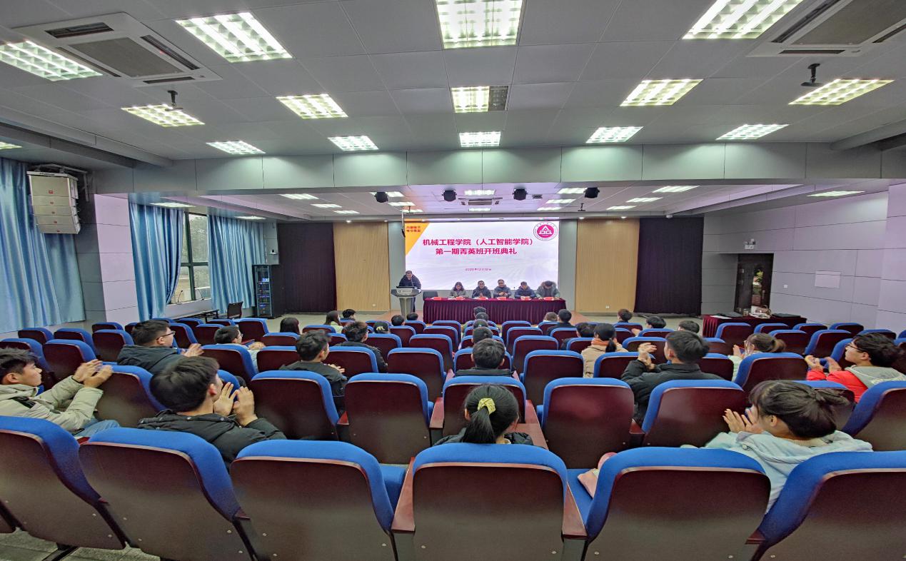 本网讯 2020年12月18日下午,机械工程学院(人工智能学院)第一期菁英班开班典礼在5J117教室举行。学生处副处长黄炜,机械工程学院(人工智能学院)党委副书记李文江、何志恒,菁英班班主任以及全体菁英班学员出席开班典礼。