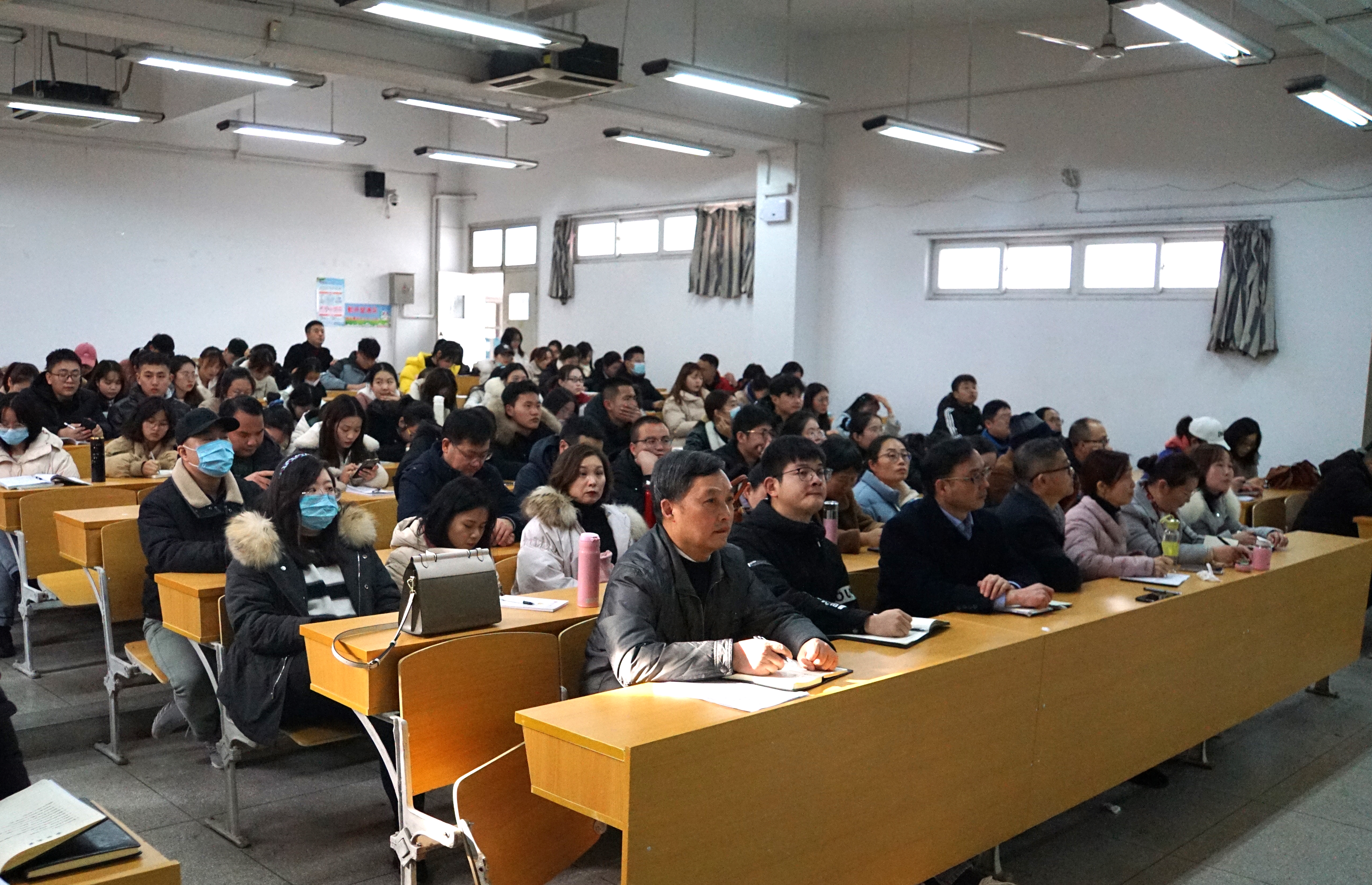 本网讯 为深入学习贯彻党的十九届五中全会精神,12月23日,人文学院在2J106举办了党的十九届五中全会精神专题学习宣讲会,校十九届五中全会精神宣讲团成员马克思主义学院副教授王效老师应邀作报告,学院全体教职工、学生党员和党校培训班学员参加,学院党委书记邓英扣主持会议。