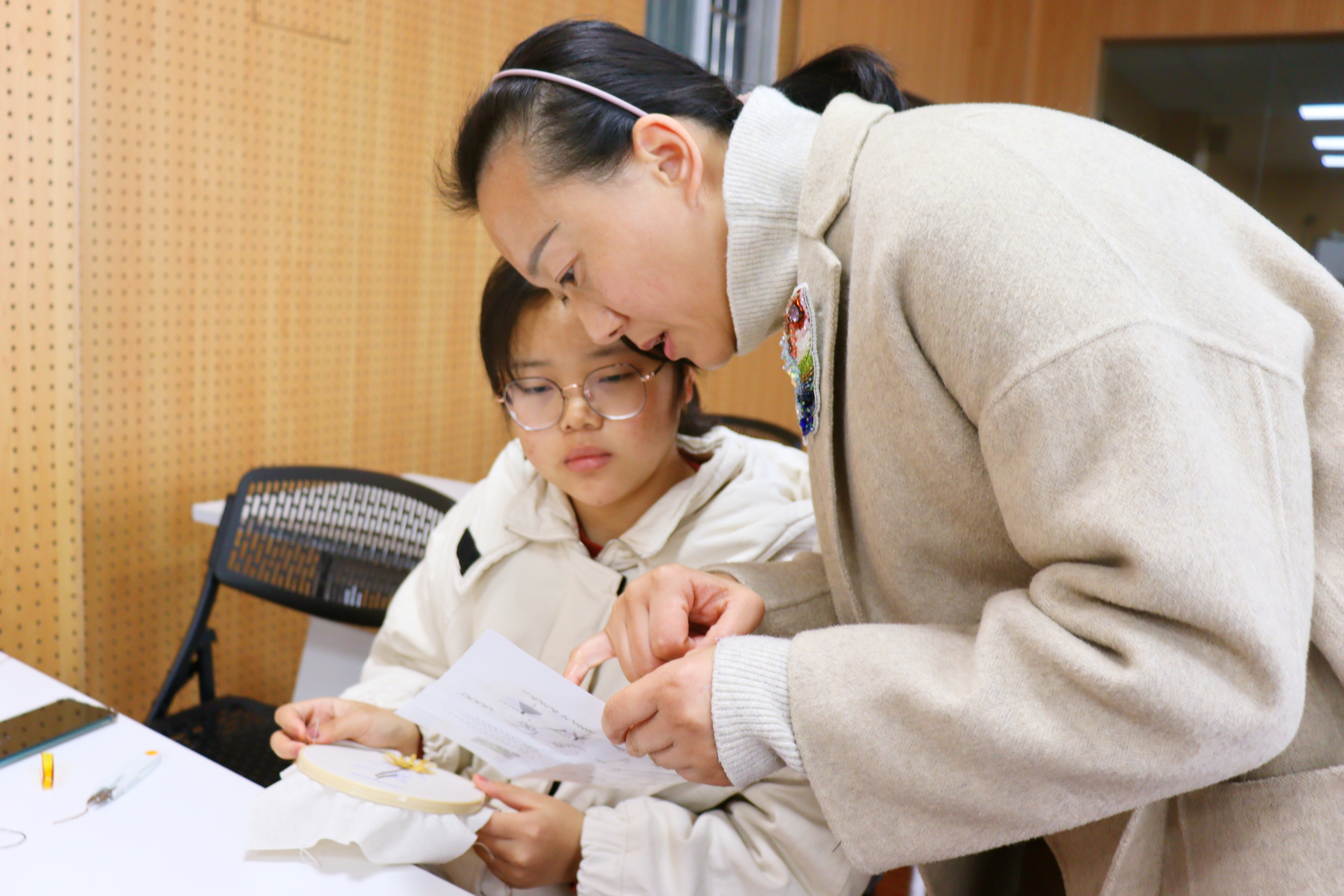 志愿服务活动也让参与的教师得到了教育,马翔老师说:通过这次锦绣纺服的志愿活动,我发现原来在工科为主的学校里,艺术的课程更能激发学生的参与性和创造力,在课程学习中他们充满热情和自信,希望这种活动以后能多办常办,让更多的学生释放自己的天性。邬红芳教授说:刺绣是植根于民间、鼎盛于宫廷的中华民族传统手工艺的代表,通过服装党支部给广大学生开设“锦绣纺服”的刺绣课,理论上让学生知道刺绣历史和享誉世界的名绣佳作,实践上手把手的教会零基础学生穿针引线,绣绷上一朵朵一簇簇的花草在学生针线之间盎然开放,通过行动增强文化自信!从而热爱中华传统文化,传承文化精髓。张晓伟老师说:在教育过程中,学生被精益求精的工匠精神深深折服,老师看到自己教授的传统文化被更多人群接受并喜爱而自豪。