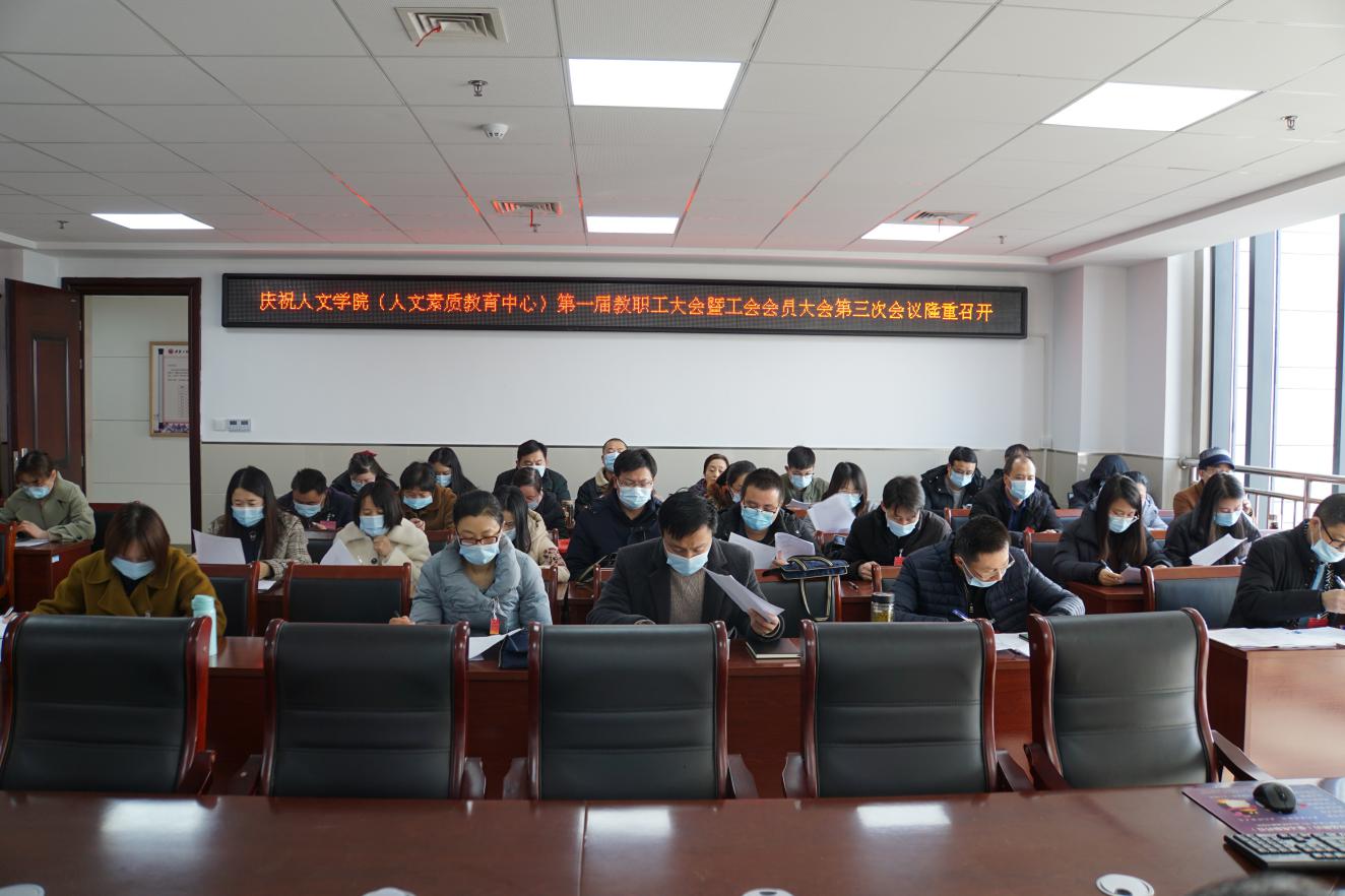 本网讯 1月20日,人文学院第一届教职工大会暨工会会员大会第三次会议在图书综合楼1307会议室召开,学院全体教职工、工会会员参加会议。