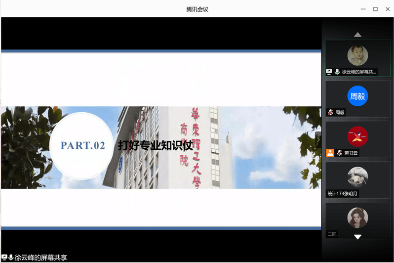 本网讯 2021年3月6日,数理与金融学院开展17级研究生复试经验分享交流会,交流会以腾讯会议方式在线进行。会议邀请了4名已经就读硕士研究生的2020届毕业生给17级考研学生做交流、辅导。会议由17级辅导员蒋书云主持。