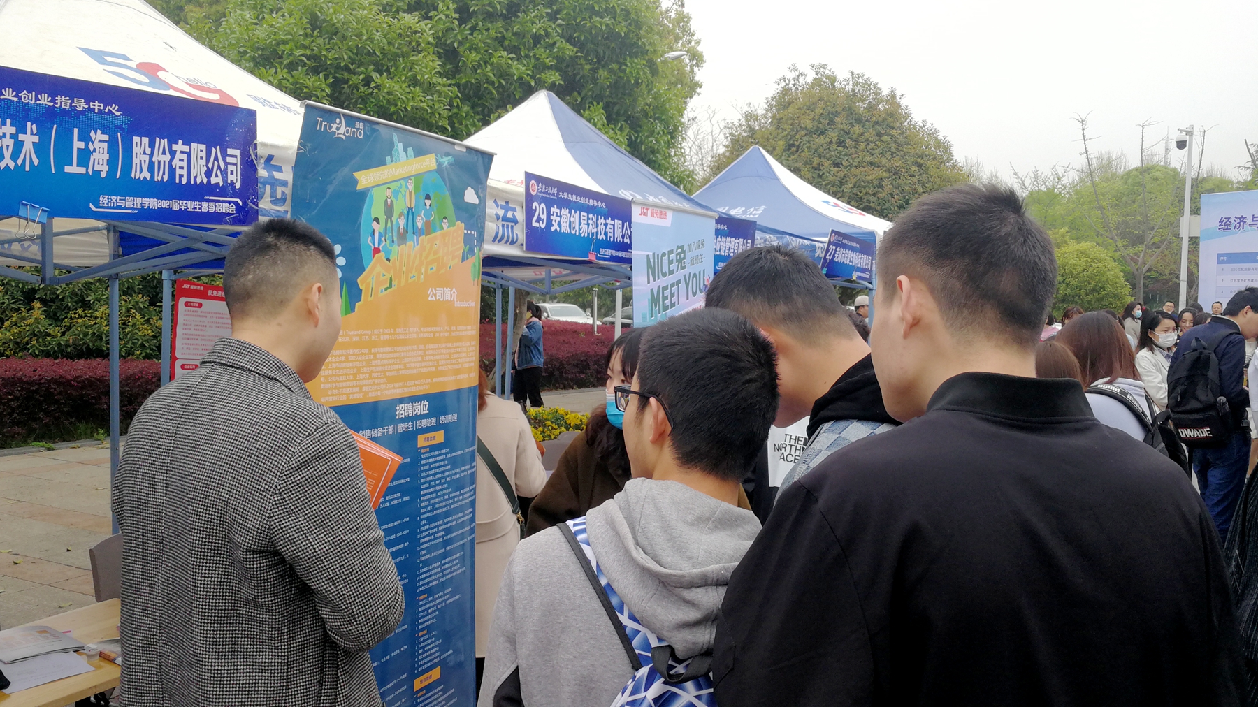 本网讯 阳春三月尾,就业好时节。经济与管理学院为切实做好学院毕业生就业工作,为用人单位与毕业生搭建双向选择的平台,全面提高学生就业的针对性和实效性,于3月31日在师生活动中心广场举办了2021届毕业生春季专场招聘会。