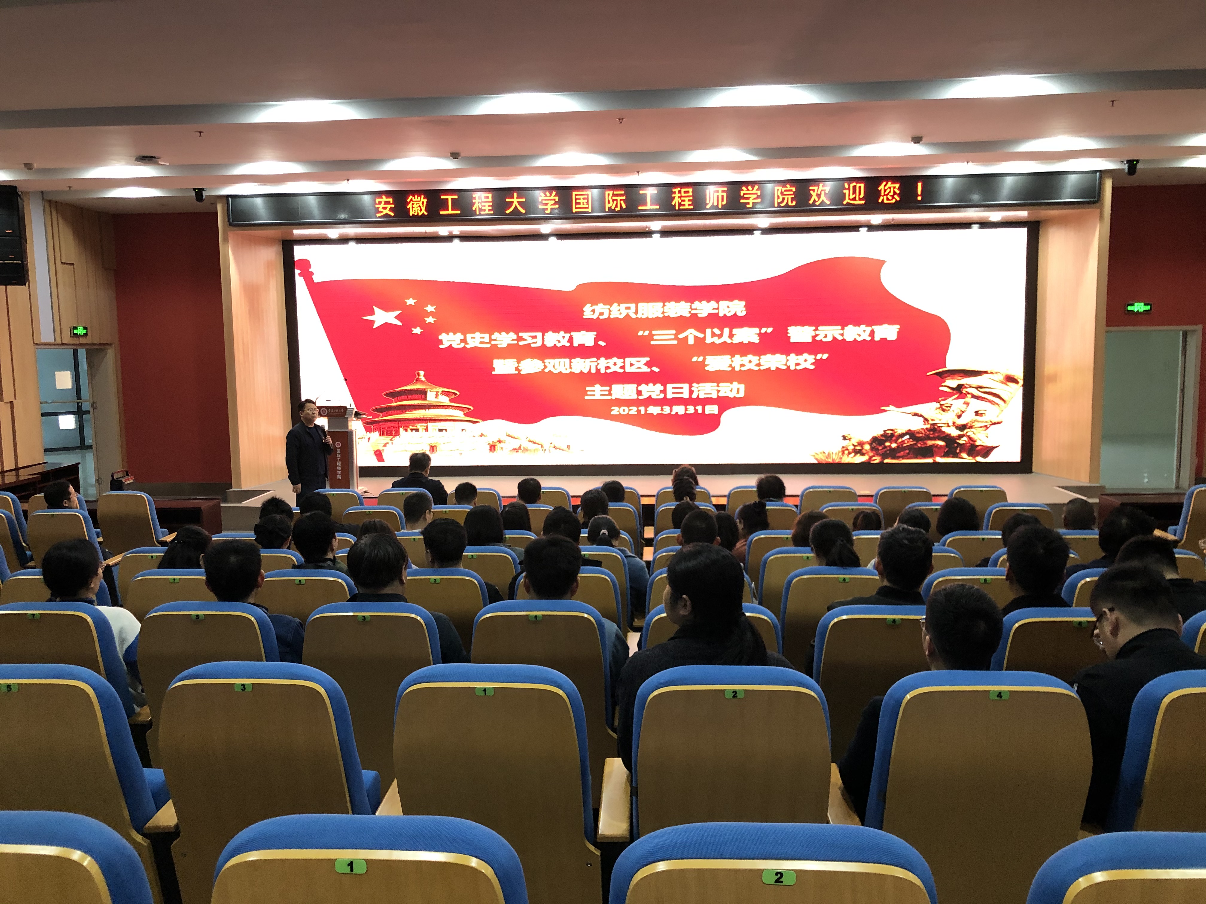 本网讯 3月30日下午,纺织服装学院组织全体教职工前往新校区国际工程师学院,开展党史学习教育、“三个以案”警示教育暨“爱校荣校”主题党日活动。纺织服装学院一行受到了国际工程师学院校区管委会常务副主任魏长顺、配建办副主任陈阳、管委会综合科科长王中江等热情接待。