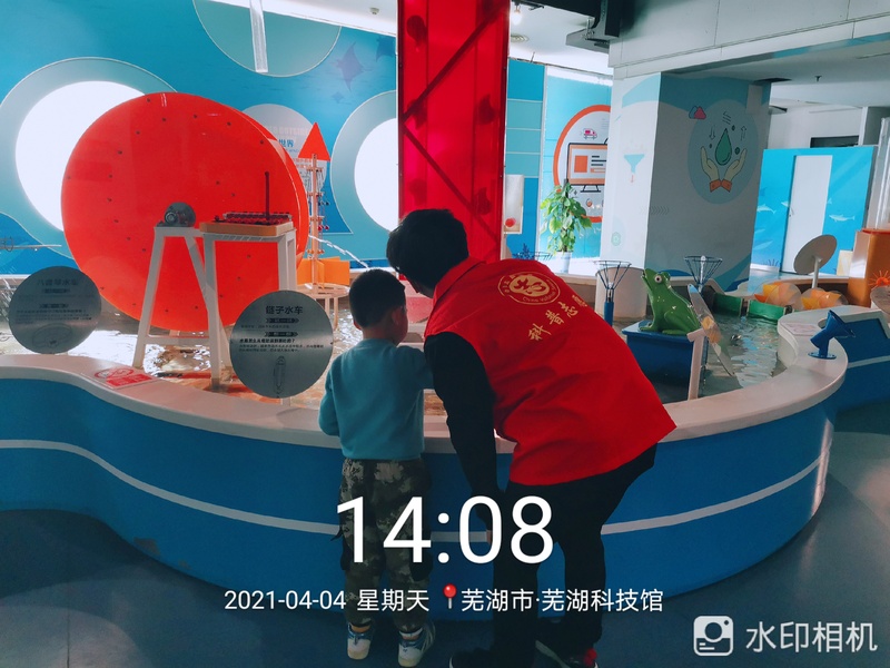 本网讯 近日,电气工程学院“望日莲”芜湖科技馆科普志愿服务项目的8名志愿者来到科技馆开展志愿服务活动。在近八个小时的志愿服务中,青年志愿者立足岗位职责,认真向参观者讲述科技馆中那些天马行空又引人入胜的科学知识,红色小马甲与川流不息人群交织成一道靓丽的风景线。