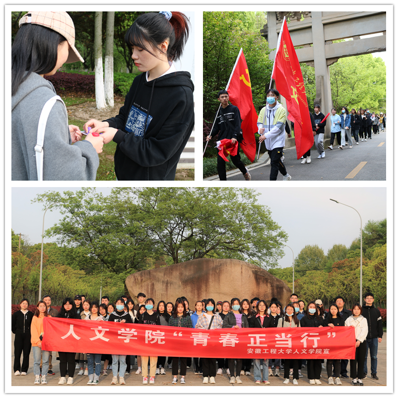 本网讯 为扎实推进党史学习教育深入开展,铭记中国共产党百年奋斗的光荣历程,缅怀革命先烈,传承红色基因,推动党史学习教育往深里走、往心里走、往实里走。2021年4月10日下午,安徽工程大学人文学院团委结合“青春正当行”活动组织团员青年于神山公园开展主题为“铭记党史祭英烈 暖春四月正当行”的党史学习教育的实践环节。人文学院党委书记邓英扣,院团委书记、组织员、研究生秘书、各学生党支部书记、学生党员和共青团员参加此次活动,此次活动由团委书记谢红翠主持。