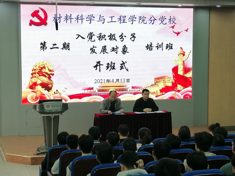 本网讯 4月13日下午,材料科学与工程学院分党校在5J117举行第二期入党积极分子培训班、第二期发展对象培训班开班式。院党委副书记、院分党校副校长方玖胜以及60位入党积极分子培训班学员和55位发展对象培训班学员参加会议。会议由培训班班主任田园主持。