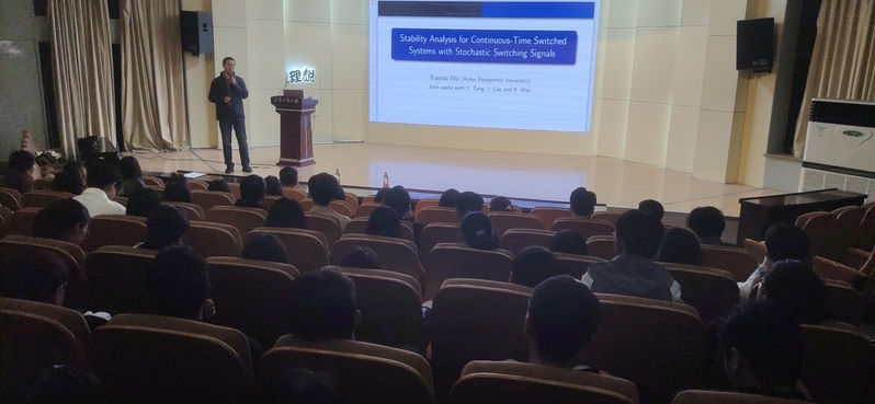 吴小太作了主题为“非线性随机混杂系统的稳定性分析”的报告,该项目近日获得了安徽省自然科学奖二等奖。他以浅显幽默的方式结合生活中的实例为大家讲解课题的由来和意义,理顺了从发现问题、查找文献、获得线索、找到规律到实证的科研过程,他指出科研是补缺补漏、创新发展的循序渐进的过程,本科生阶段科研的两个重要元素是发现问题和不断学习研究,所以要始终保持好奇心,不断学习拓展自己的科研思维。
