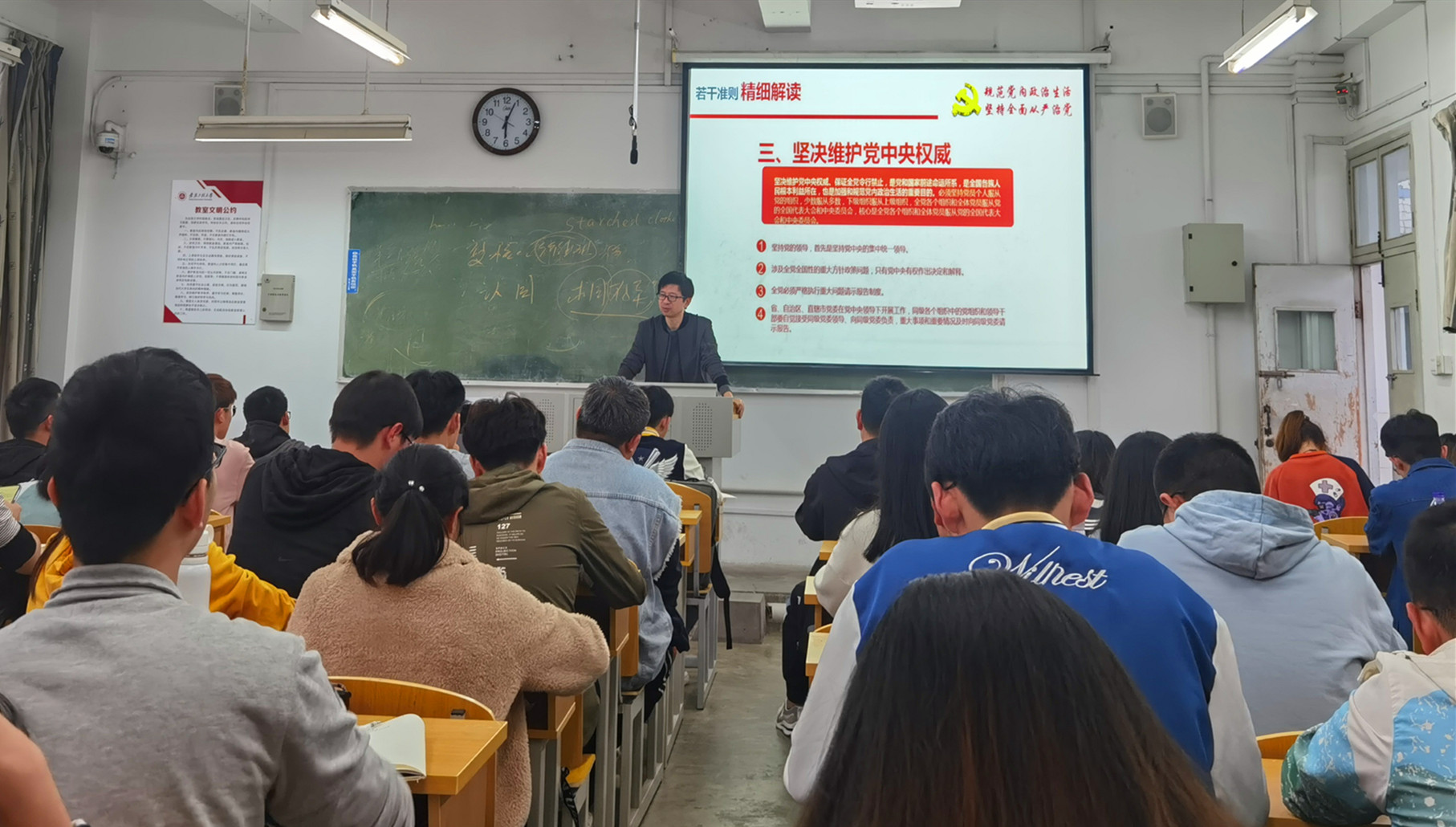 本网讯 “党的历史是最生动、最有说服力的教科书。”4月21日下午,计算机与信息学院分党校邀请马克思主义学院教师彭鸿雁和组织部副处级组织员梁雪松,为第八期党员发展对象班学员作了“党史学习”和“《关于新形势下党内政治生活的若干准则》学习”两个专题讲座。