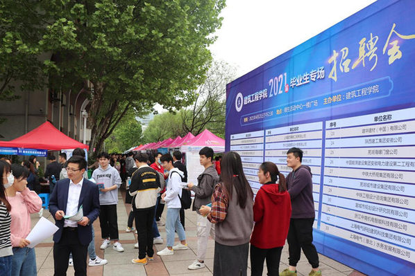 本网讯 为扎实做好2021届毕业生就业工作,拓展毕业生就业渠道,积极为用人单位与毕业生搭建就业双选平台,建筑工程学院于4月21日下午在师生活动中心广场举办了2021届毕业生春季专场招聘会。