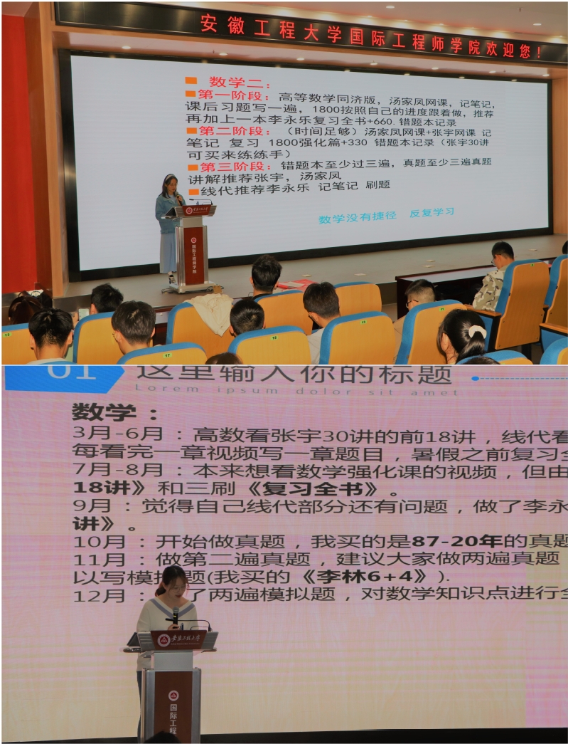 考研路漫漫,通过学长学姐的倾囊相教,在场同学学到了很多对自己有帮助的考研知识,从学长学姐们口中,勤奋是他们提到最多的词语。心中有梦,以梦为马,志存远方,不负韶华。