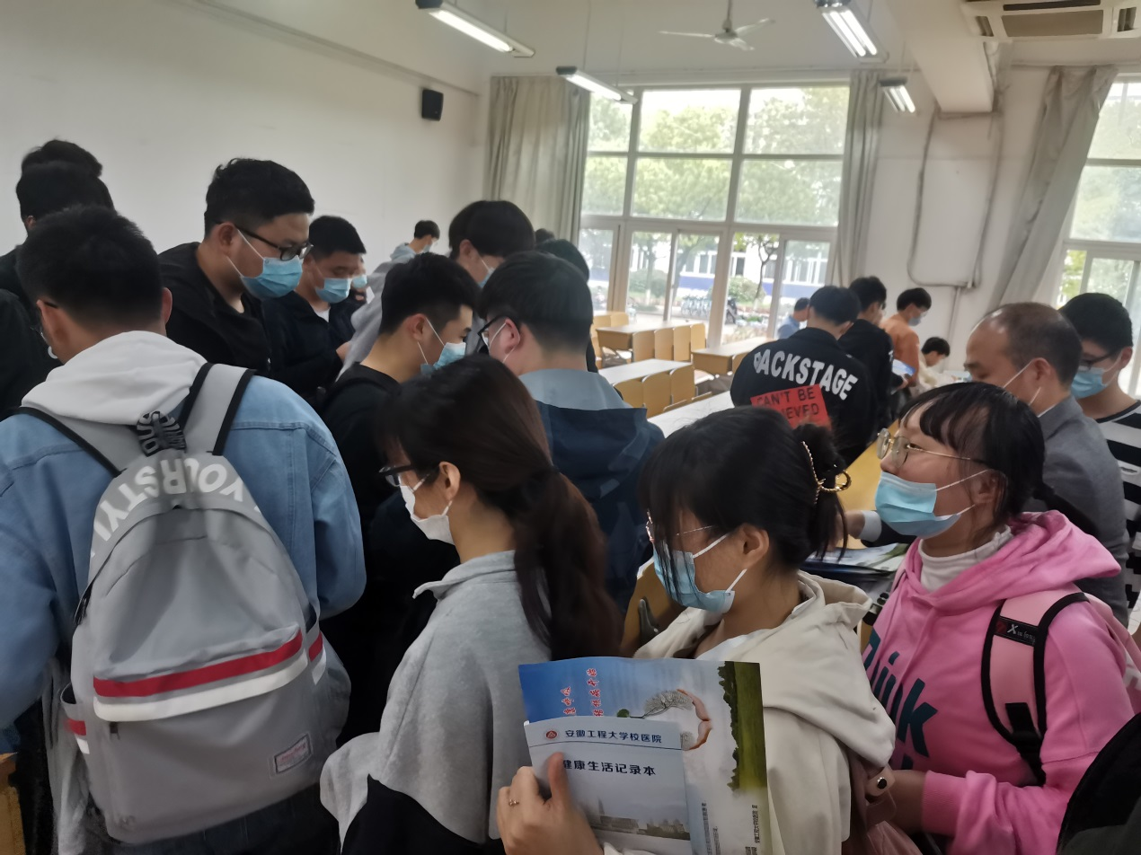 讲座结束,彭伟和现场同学进行了互动交流,解答学生提出的疑问,校医院工作人员给同学们发放了预防结核病宣传手册。