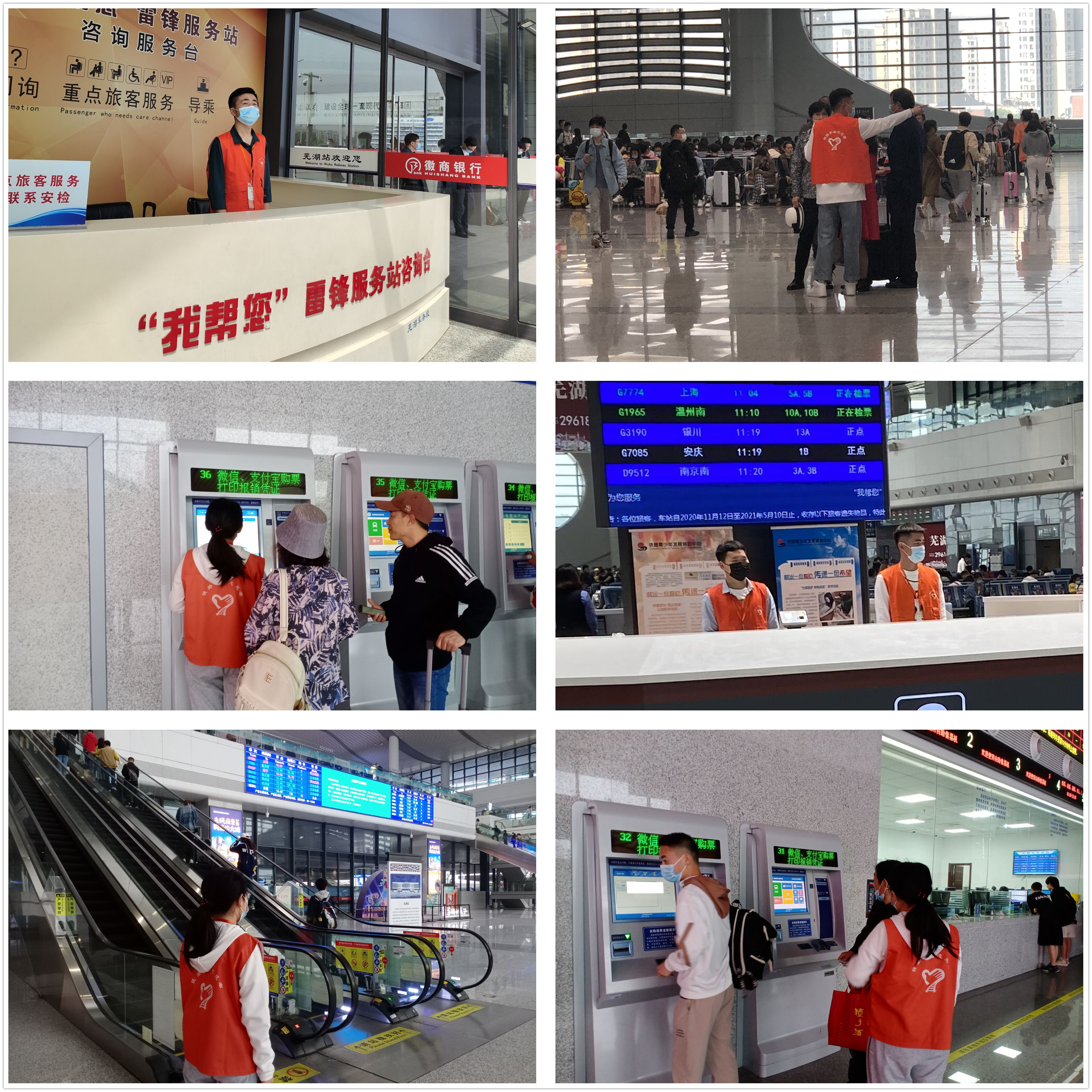 本网讯 为深入学习习近平总书记系列重要讲话精神,扎实开展党史学习教育,响应五一国际劳动节和五四青年节的来临,坚定全心全意为人民服务的根本宗旨,2021年5月4日至5日,人文学院分党校组织第十一期党员培训班、第二十六期积极分子培训班、第八期发展对象培训班学员在芜湖火车站开展志愿服务活动。
