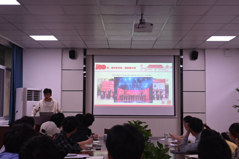 开班典礼在青春激昂的团歌中落下帷幕。随后开始了本期青马班第一次培训课。校十佳大学生应拔191李硕人做了题为“青年学党史,典型做示范”的分享会。李硕人从青年学党史的重要意义、青年学党史要把握党史发展脉络、青年学党史要领悟党的百年历程、青年学党史,典型做示范四个方面带领学员重温党史,感悟党的光辉历程。同时,以自身作示范,介绍了成为十佳大学生的心路历程和相关科研成果,为全体学员树立先锋模范作用。