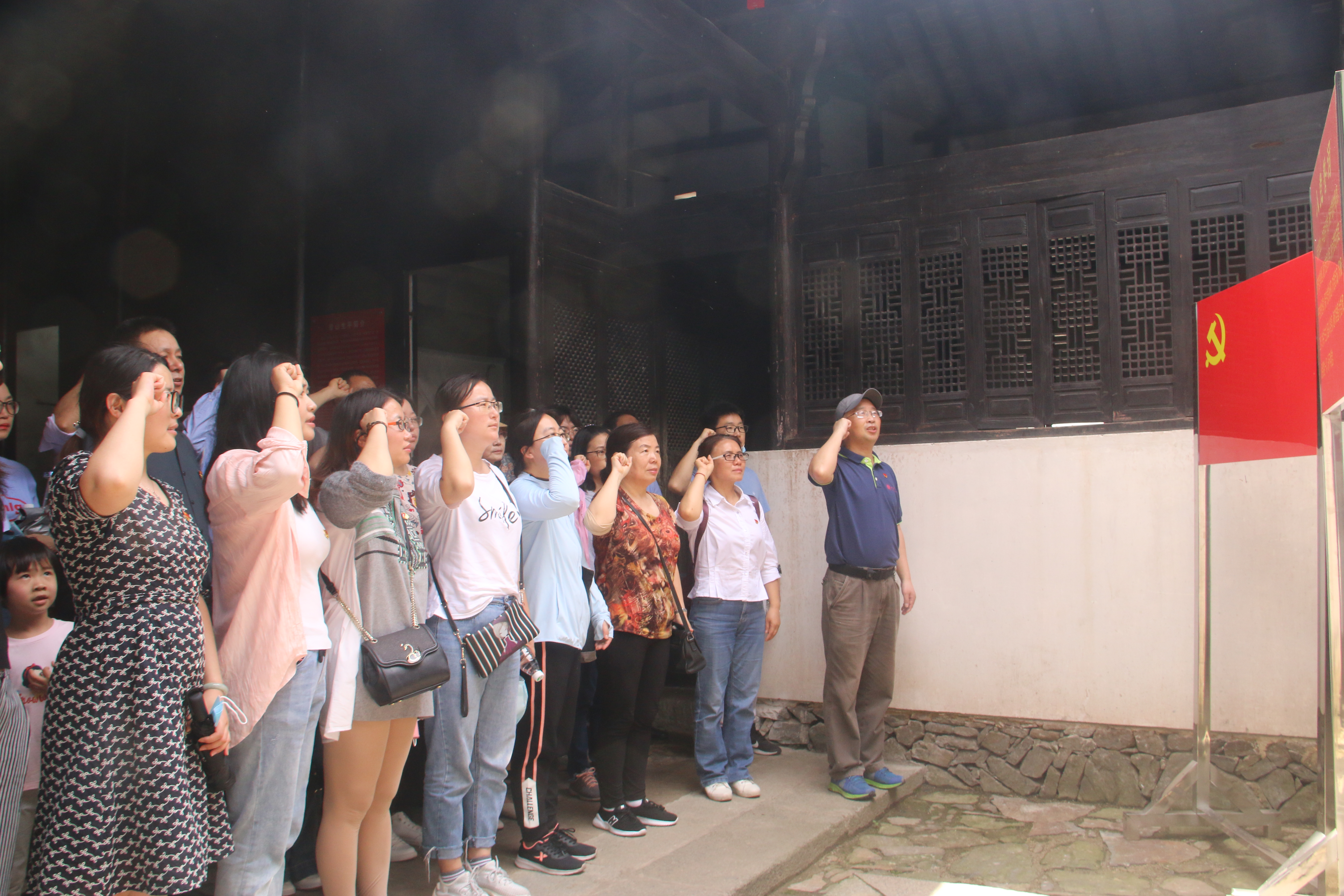 “我志愿加入中国共产党,拥护党的纲领,遵守党的章程,履行党的义务……”在中共中央东南局旧址,全体教工党员面向党旗,紧握右拳,重温了入党誓词,坚定了初心信念。