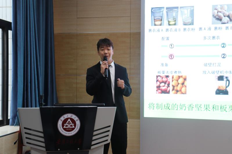 本网讯 5月12日,安徽工程大学第二届“三只松鼠杯”休闲食品创新大赛决赛在生物与食品工程学院虚拟仿真中心举办,本次获奖作品被推荐至中国食品科学技术学会第三届“三只松鼠杯休闲食品创新大赛。经过初赛和决赛激烈的角逐,最终评选出特等奖一名,一等奖三名,二等奖六名,三等奖十名,优秀奖十二名。