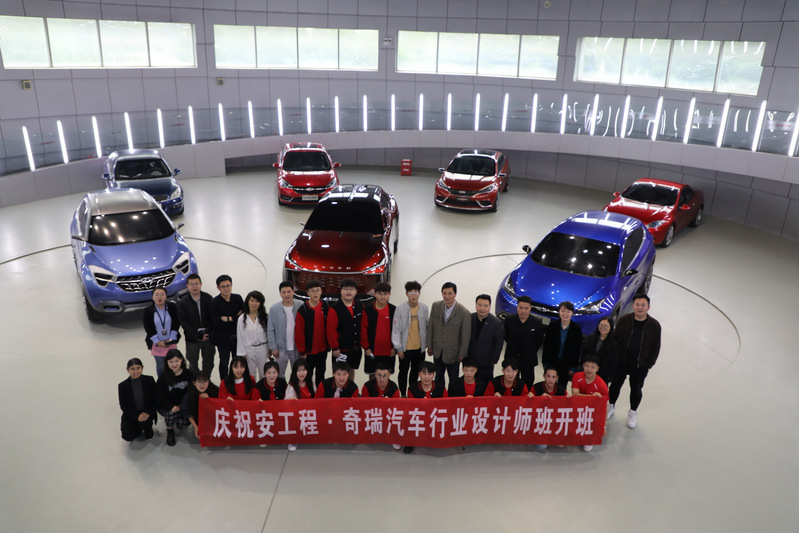 本网讯 5月19日,我院首届汽车行业设计师班开班仪式在奇瑞造型中心举行。参加开班仪式的有奇瑞汽车造型中心副总监王杰,造型中心资深设计师汪洋,奇瑞大学高级经理程婷婷,奇瑞大学培训经理苑玲娟,艺术学院党委副书记(主持)胡家增,副院长王小元,相关辅导员及首届汽车行业设计师班全体学员。