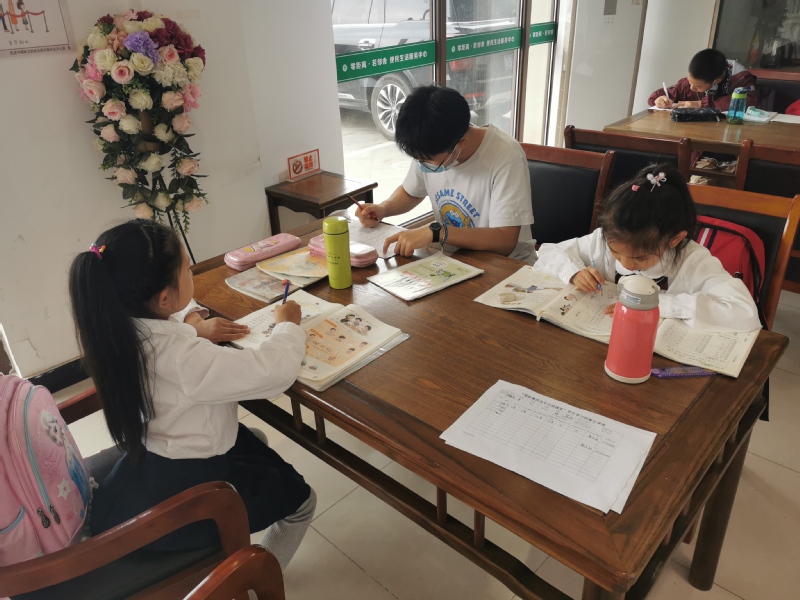 来社区写作业的孩子中,有的父母工作繁忙,也有的是留守儿童,主要由爷爷奶奶照顾。前来接孩子的王大爷说:“我家孩子三年级,平时孩子父母工作忙,我们年纪大了,也不懂辅导孩子做作业。一年前听说社区有这个服务,有安全保障,又是大学生辅导,我们就放心地把孩子送过来了!现在每天在这里就把作业写完了,回家就轻松很多,给我们家长省了不少心!” 五年级的周思麒每天都会来四点半公益课堂,他说:“我很喜欢这里,这里就像在学校一样,有好多同学;不会的地方有哥哥姐姐们可以教我,还耐心地帮我检查作业。平时爸妈没时间给我报听写,在这里很快就能完成了!”