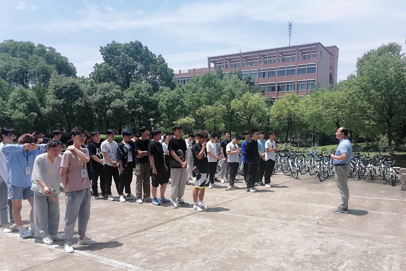 在演练前,辅导员田园老师作动员讲话。他介绍了此次演练的目的、演练内容、流程并针对演练过程提出相关要求。接着,学生会主席孔鑫城同学带领参演同学学习了防震、应急避震、紧急疏散知识,熟悉应急避险的正确方法。