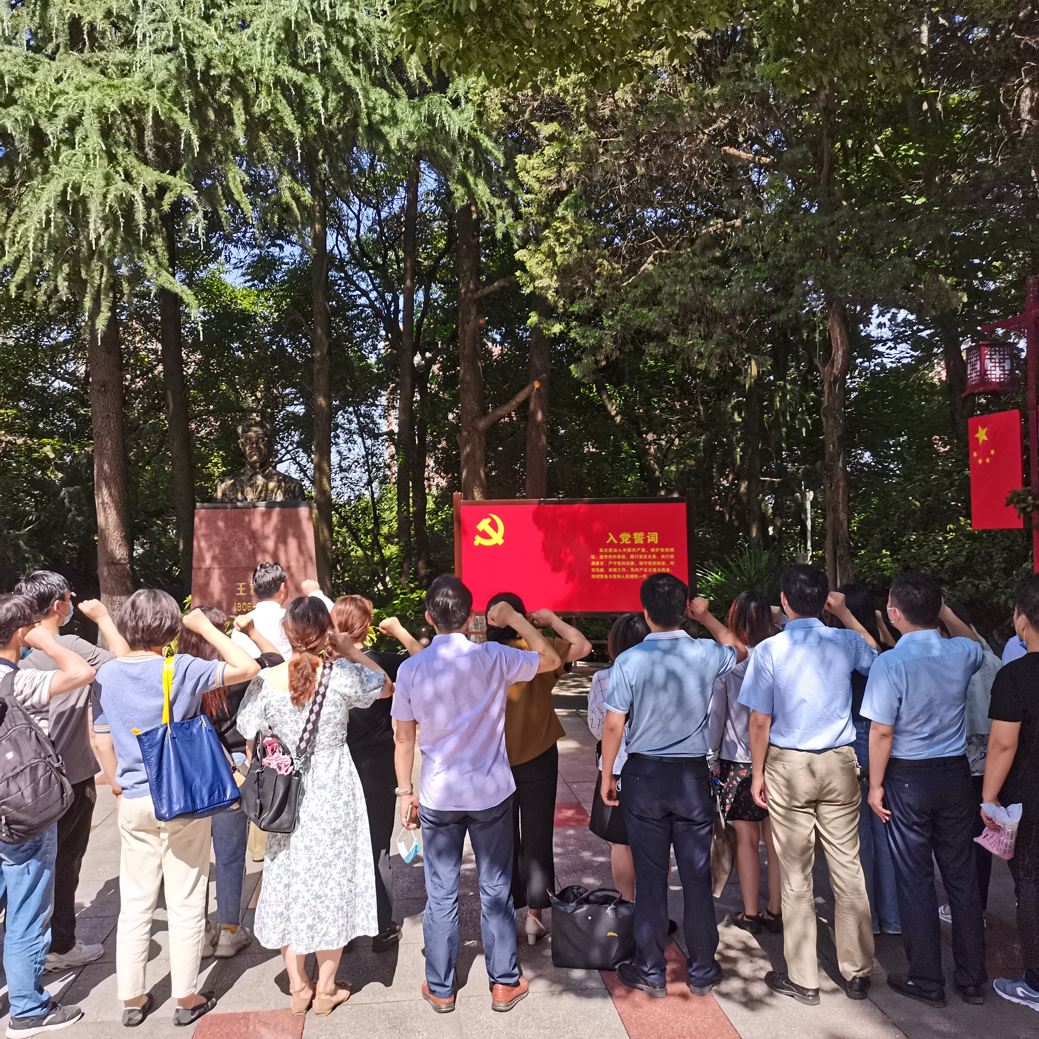 在院党委书记邓英扣的带领下,各位党员佩戴党员徽章,在鲜红的党旗前宣誓,重温入党誓词。还先后参观了王稼祥事迹浮雕、纪念馆、铜像,在工作人员的解说中,对王稼祥各个历史时期的实物、图片、信件等珍贵资料进行了认真学习。在参观过程中,各党员教师根据自身对党史的研究与了解,对我党历史展开了生动的探讨。通过学习,党员教师纷纷感慨“回望那段战火纷飞的历史岁月,这里见证了老一辈无产阶级革命家工作、生活的点滴细节。今天的美好生活来之不易,我们要继续加强党史学习,坚守初心使命。”