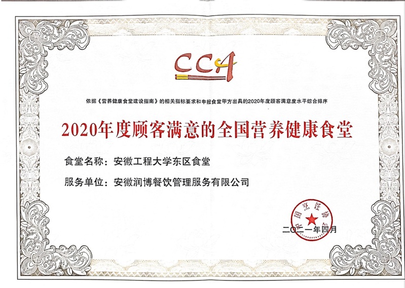 本网讯 为进一步贯彻《健康中国行动(2019-2030年)》和《国民营养计划(2017-2030年)》精神,落实国家卫健委《营养健康食堂建设指南》的相关指导意见,引导团餐产业不断增强营养健康意识,提升营养健康服务水平,推进健康中国建设夯实营养健康基础,中国烹饪协会于2月22日,面向全国开展“2020年度顾客满意的全国营养健康食堂”申报评选工作。我校积极组织东区食堂参与申报,最终荣获“2020年度顾客满意的全国营养健康食堂”荣誉称号。