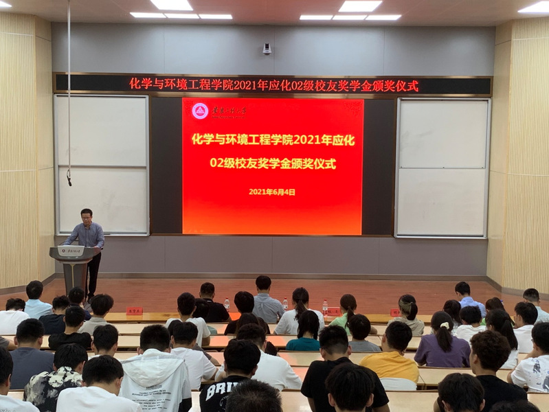 程亮代表校友向获奖同学表示热烈的祝贺,他讲述了自己的成长经历和奋斗的历程,讲述了校友奖学金的成立渊源,他表示要把爱心继续传承发扬,要鼓励更多的应化专业学子,希望学弟学妹们不负青春,以梦为马,不负韶华。