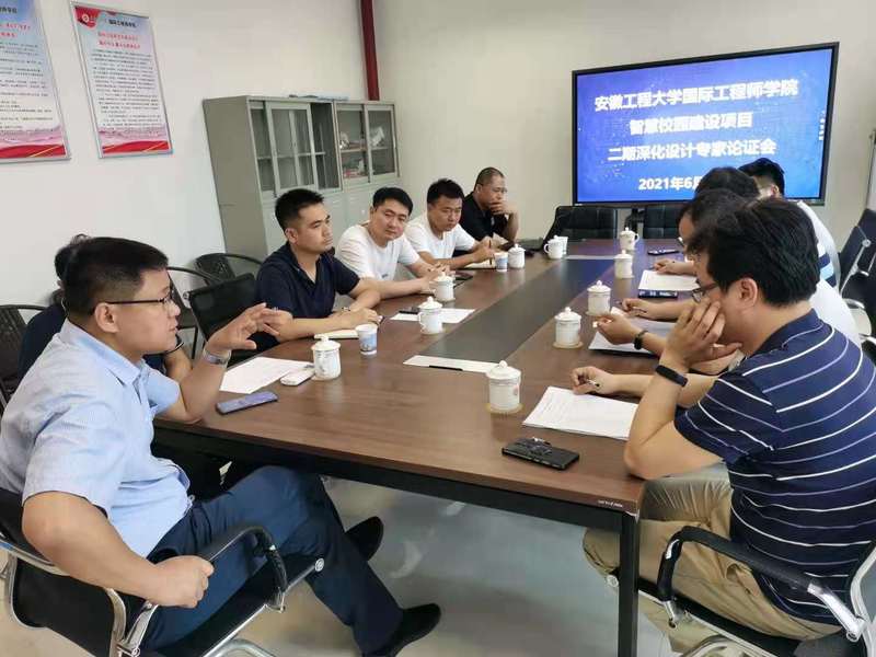 本网讯 2021年6月10日,国际工程师学院智慧校园建设项目二期深化设计专家论证会在新校区食堂及师生活动中心三楼会议室召开。会议邀请安徽师范大学、安徽机电职业技术学院、安徽工程大学等信息化领域专家指导论证深化设计方案。项目承建方讯飞智元信息科技有限公司、监理方合肥信息工程监理咨询有限公司代表以及国际工程师学院配套建设办公室相关人员参加会议。