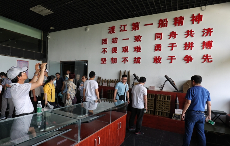在渡江战役第一船登陆点——繁昌区板子矶,学员们通过聆听讲解、参观实物展览、观看记录片等方式,追忆革命峥嵘岁月,感悟“团结一致,同舟共济;不畏艰难,勇于拼搏;坚韧不拔,敢于争先”的“渡江第一船精神”。通过参观学习,全体学员近距离感受烽火连天的革命岁月,大家表示要赓续红色血脉,鼓足奋进力量,以更好的精气神迎接中国共产党成立100周年。