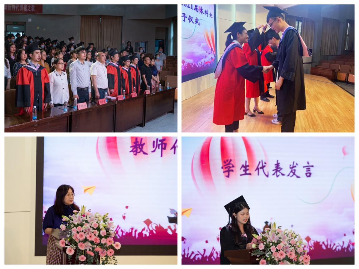 教师代表项菁和学生代表张婉钰依次发言。项菁总结四年与同学们走过的点点滴滴,肯定成绩,寄托希望。张婉钰在发言中几度哽咽,她代表全体毕业生表示定不忘学校和老师的谆谆教诲,定永远铭记“尚德敏学 唯实惟新”校训精神,定会以昂扬之姿态走出青春之步伐,做一名出色的安工程人。